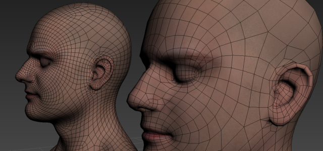 La salida basada en quad permite la fácil remodelación posterior, por ejemplo mediante empuje / tracción pintura. El tamaño de la cara regular reduce problemas de representación (GI, desplazamiento) y se puede utilizar Turbosmooth en él. También es mucho más agradable a la vista