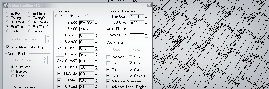 Atiles es un script/plugin para 3ds Max para la creación rápida de azulejos, suelos de pavimento, paredes de ladrillos, tejas, vallas y otros objetos de elementos repetibles para visualizaciones arquitectónicas.